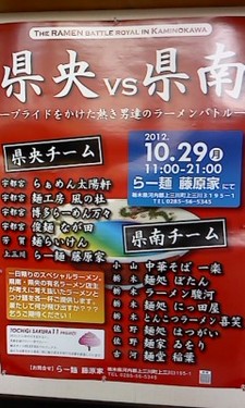 ☆ラーメンバトル?!県央VS県南☆「県央VS県南―プライドをかけた熱き男達のラーメンバトル―」 本日1日限りのラーメンイベント開催! 藤原家はもちろん、宇都宮や芳賀から県央チームと 小山・佐野・栃木など県南チームに分かれて、 1日限り、この日の為に作ったラーメンとつけ麺を食べる事ができます♪ ![]() 【県央チーム】