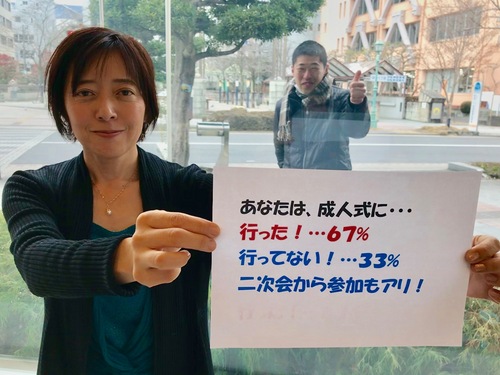 ☆今日のB-UP!チョイス結果☆ あなたは、成人式に・・・ 行った! →67% 行ってない! →33% でした。 【二次会から参加するっていう人もいるのかな~?】 明日もお楽しみに~ ![]() |