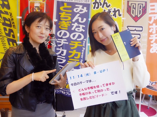 この時期の定番テーマ!B-UP!火曜日! 鹿島田千帆とHONEYB・AZUSAが、 生放送でお送りしました! ![]() 「B-UP!お悩み相談チョイス!」 今週は30代の男性:オニ太郎さんのお悩みでした! 【 友人を真似して、スケジュール管理を・・・ 手帳に変えてみる・82% スマホのまま・18% 】 でした! ![]() 今日はこの時期の定番『手帳』がテーマでしたが、 皆さんは、どんな手帳をお使いになっているでしょうか? 来年の手帳が並び始めると、 年の瀬を感じてしまう今日この頃。。。 |