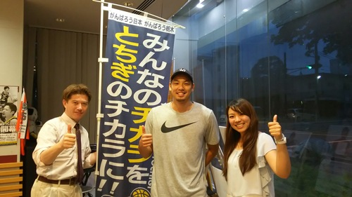 水曜日は【GO!GO!BREX!】 今週は、スタジオに、 背番号9 遠藤祐亮 選手 が登場!! 今日は、オフだったということで、 ドラえもんのDVDを観ていたそうですよ☆ 先日、栃木県臓器移植推進協会から、 「栃木県臓器移植推進サポーター」に任命されました! 試合会場などで、臓器移植について知ってもらうための PR活動を1年間務めます! 県内各地で遠藤選手が載った啓発ポスターが貼られるほか、 ブレックスがコラボした臓器提供意思表示カードが 配布されるそうです。 ![]() 遠藤さんは、7月の国際大会にも出場! 日本代表として先発出場し活躍しました♪ 選ばれた時は、渡邊選手にも激励されて 本当に嬉しかったと話していました! 先日のプレシーズンゲームでは、 昨シーズンとの違いとして 「相手もサイズが大きくなったので、 リバウンドがあまり取れなくなっていたので、 それが課題と」やはり、変化を肌で感じたようです。 そして、今週末もプレシーズンゲームがありますよ! チケットは好評発売中です! ・・・・・・・・・・・・・・・・・・・・・・・・・・・ ★ 【ブレックスインフォメーション】 ≪ レギュラーシーズン チケット好評発売中 ≫ 9月24日(土)25日(日)に、 ブレックスアリーナ宇都宮でホーム開幕戦 秋田ノーザンハピネッツ戦は、指定席がほぼ完売。 自由席もお早めにお買い求めください。 お早めにお買い求めください。 その他イベント、最新情報などは、BREXのホームページ。 Facebook・Twitterをチェック!! |