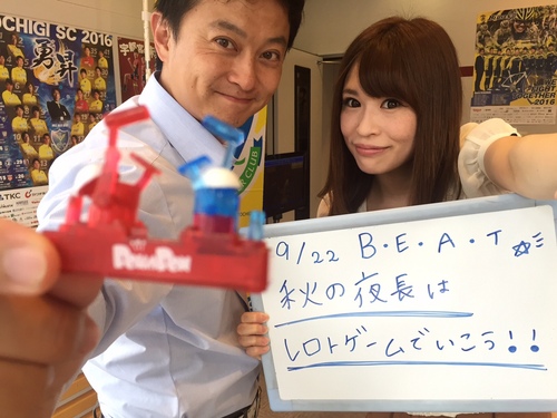 ☆☆ROCK THE GOAL!☆☆今日のBEAT SPORTS 【ROCK THE GOAL】は ゆうにいと田村愛でお届けしました! 先日、初めてのグリスタでの試合を見に行けた愛ちゃん! 9月18日(日)の対SC相模原戦でしたが、 結果は、先制されるも追いついて、1-1のドローでした! 栃木SCの次戦は、 ホームでの一戦!! 9月25日(日)午後5時から「ガンバ大阪U-23」と対戦。 今シーズンの残りは8試合! みんなの熱い応援で、J3優勝に向けて勝ち点3を+! 一緒に勝利をつかみ取りましょう! 来週もお楽しみに~♪ ![]() |