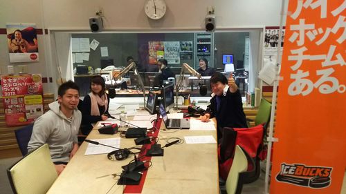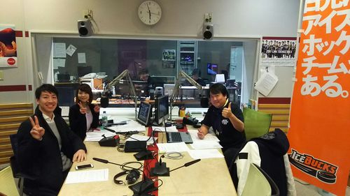 阿部嵩之選手と飯野智行選手がスタジオに来てくれましたー! ![]() 阿部選手は昨日ケガをしてしまったということで、