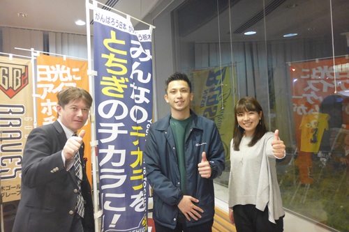 GO!GO!BREX!』 今週は、背番号3 前村雄大 選手が生出演!!水曜日は『GO!GO!BREX!』 今週は、背番号3 前村雄大 選手が生出演!! スタジオ前に集まってくれたファンの皆さんの、 ユニフォーム「3」も、しっかりと記録!! ありがとうございました! 今日のコーナーの趣旨通り、バスケの話も熱く! 語っていただいたんですが、、、、 実は、今日の番組テーマ「My BEST キャラクター」については もしかしたら、リスナーの皆さん以上に? 熱が入っていたかもしれないトークでした! ![]() アニメ・ゲーム好きの前村選手。 「My BEST キャラクター」は、と言いますと、、 「ノーゲーム・ノーライフ」(ラノベ・アニメ作品)の キャラクター『白』だそうです。 (気になる人は検索してみてね☆) そして、髪の毛をバッサリカットし、 イメージチェンジもしていましたよ~。 何でも放置しすぎて、練習や試合のときに 髪の毛が邪魔で、見えにくかったり、 プレーに集中できなかったりで、ダメだったようです! これで、プレーもパワーアップするカモ!? ・・・・・・・・・・・・・・・・・・・・・・・・・・ ★ 【ブレックスインフォメーション】 ・「BOUNCE BACK MARCH」のアウェーゲームは パブリックビューイングを開催!! 3月に行われる7試合のアウェーゲームは全て、 パブリックビューイングも行われます! 3日・4日の京都戦は「Cafe Round87」で開催。 ・次のホームゲームは、3月10~11日。 ブレックスアリーナ宇都宮で、 名古屋ダイアモンドドルフィンズと対戦! そして1週空いて、3月24日~25日。 大田原市の栃木県立県北体育館で行われる、 川崎ブレイブサンダース戦が控えています!! シーズン最終戦までの、チケット販売も スタートしています! プレーオフをかけた終盤戦の戦いです! どのゲームも、チケットの購入はお早めに! その他詳しくは、ブレックスのHPまで! |