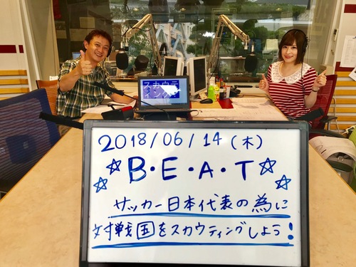 渡辺裕介(ゆうにい)と、田村愛(あいちゃん) リポーターは、HONEY B 榎本くるみです! RADIO BERRY スタジオBヒルズから生放送☆ 今日のメッセージテーマは・・・ 【サッカー日本代表のために対戦国をスカウティングしよう!】 今夜開幕する、FIFAワールドカップ ロシア大会!日本が勝つためには、対戦国のことをよく知ることから始めなくてはなりません!そこで・・・ 今日のBEATではリスナーの皆さんが“偵察隊”となって対戦国(コロンビア・セネガル・ポーランド)についての情報を送ってください!例えば・・・ ・あの国で今、流行しているのは“インスタ映え”らしいです! ・あの国には、“富士山”という美しすぎる山があるらしい! ・あの国では、ひらがなとカタカナ、さらに漢字というものを操るらしい! などなど、どんな小さな情報でも構いません!(サッカーの情報じゃなくてもOK!) みんなでスカウティングして、日本を勝利に導きましょう! ![]() |