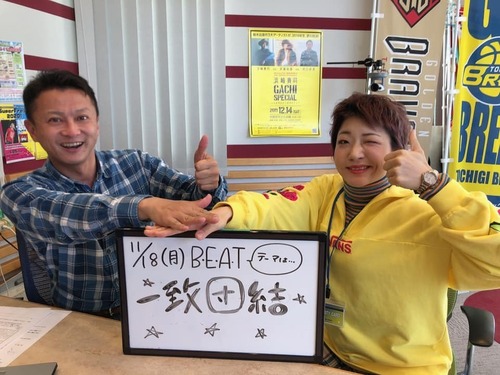 団結力!月曜【B・E・A・T】 渡辺裕介と榎本くるみ(くるみ)コンビ! リポーターはRioちゃんの生放送!! 今日のメッセージテーマは 【 一致団結!! 】 ![]() ラグビー日本代表で話題になった「ワンチーム」 日本プロ野球界が一致団結した侍ジャパンの世界一! 嫌な飲み会から早く帰るために作戦会議! 美味しいBBQにするために、、、 などなど、皆さんが会社・チーム、友達、仲間で 一致団結した話を教えてください!! 番組中のクイズに正解すると、 月曜BEATメンバーサイン入りステッカーもプレゼント。 それでは、月曜BEAT!! 19時までお付き合いよろしくお願いします! Twitterのつぶやきは #rberry #月曜BEAT で、お待ちしています!! |