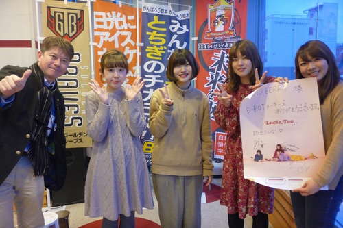岡田 眞善と、高賀茂 沙緒里(かもちゃん) リポーターは、HONEY B 山口あや! RADIO BERRY スタジオBヒルズから生放送です! 今日のメッセージテーマは・・・ 【バレンタインに一言!】です! ・手作りチョコが苦手なので、禁止にしませんか~? ・義理とは言っても、上司にチロルチョコはどうよ!? ・娘よ...父にもチョコをください。。。 などなど、みなさんのバレンタインデーへの ご意見・提案をお待ちしています! メールはメッセージフォームから! FAX:028-638-7600で受け付け中です! そして、17時からは、今注目のバンド 「Lucie,Too」が生出演!! ![]() 《4時15分頃》