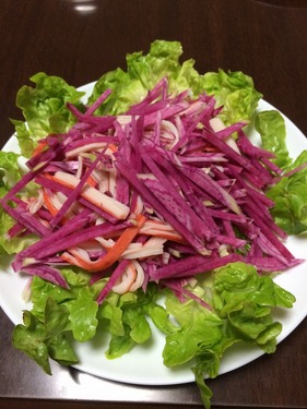 太めの千切りにしてカニカマとあえてみたら・・