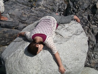 写真③泳ぎ疲れたら、冷えた体を岩であたためるd(´▽`)b
