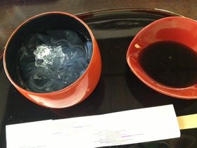 冷たいくずきりを甘い黒蜜につけて食べる・・・