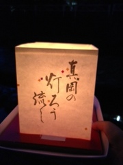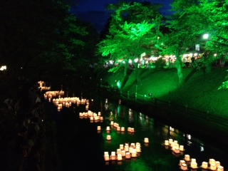 去年は川の上からすべり台のようなものに灯篭を置いて流したのですが、