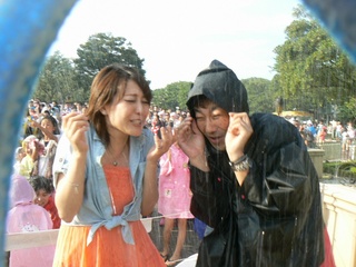 容赦ない放水のため、ポンチョ着ていても