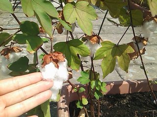 糸あたりから作っていくのかなぁと思っていたのですが、外で生えている綿の木からも、実際に綿を採り種を採り…その一連をやることで、本当の真岡木綿の作品が出来上がるのですね。