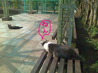 写真は、金曜日の、てんちゃんとくろぶーです。くろぶーは、きっと(今の)てんちゃんの旦那様なんだと思うんだけど、かなり亭主関白ぶってましたぜ。てんちゃんが、かまって、かまってオーラを出していましたが、全く気にしない感じ。地面でコロコロしてみたり、何にもないのに、上の方を見てみたり・・・自由なおっさんです。でも、つかず離れずそばにいて、ザ・日本男児って感じ。