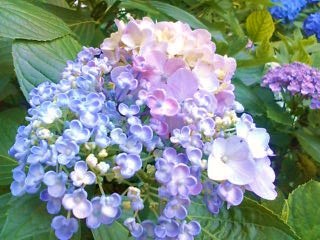 私のお気に入りは、この花びらがクルンと丸まっている小さな花の紫陽花。蕾が開きかけているのではなく、コレで目いっぱい咲いている模様です。色も、淡くブルーからピンクにグラデーションがかっているようで、一つで虹色。