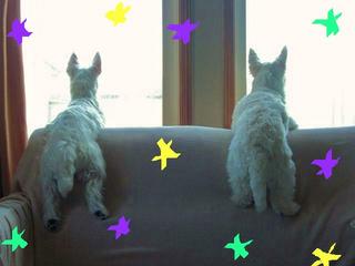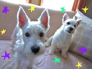 そして写真は、知美ちゃん・・・ならぬリリーちゃん家の、先客として住んでいる、2匹のワンちゃんです。ウェストハイランドホワイトテリアのニコちゃん(左)とビビアンちゃん(右)。ともにメスです。こちらも可愛いですね~。