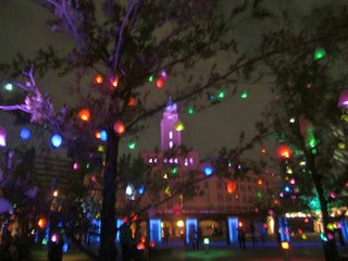 赤レンガ倉庫の港の近くを歩いていたら、色とりどりに ぽうっと光るモノが・・・