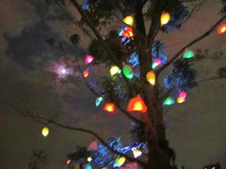 近づいてみると、木に、ほんわりしたパステルカラーの灯りが灯されて、木の実が光っているみたいな景色が広がっていたんです。