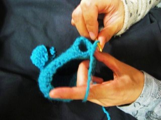 でも、かぎ針で編みたいのに、どの本を見ても、五本指は編み棒を使用している。かぎ針ではミトンしか出来ないのかなぁと思いながら編み始めたら・・・おや、ここをこういう風にすれば、指ができるんじゃないの・・・!?