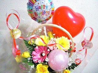バスケットの中には、お花だけでなく、バルーンが一緒にいけてあるんです。こういうのを貰ったのは初めてで、花に+アルファのギフトってすっごく可愛いんだ・・・、て目からウロコでした。嬉しい~~!