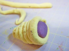 粘土を緑に着色して、レタス風に波を作った葉っぱを