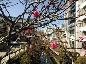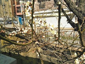 咲き始める、釜川沿いの梅が咲き始めました。