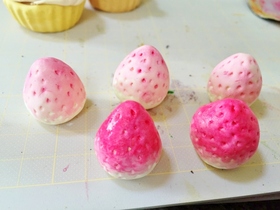 いちごに着色 ↓