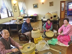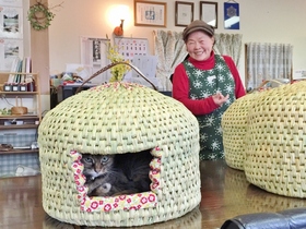 猫つぐらを藁から、編んで作っていました。