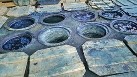 藍の発酵を促すため、土に埋められた甕の中に