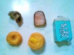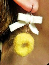 自宅で静養。声を出さないようにしながら、 体調をみつつ、できることをしようと 以前羊毛フェルトで作った、こちらのミニパンたちを アクセサリーにすることにしました。 ![]() 「食パン」をのピアスを作りたかったのだけれど、 私の髪の色にと、パンの耳が同化して、塗り壁みたいな 白い四角いのがくっ付いているようにしか 見えないのでやめました。 ピアスにチョイスしたのは、こちらの二つ! パンケーキと、ドーナッツ。 ![]() そのままだと寂しいので、フェルトでリボンをつけました。 金具の使い方は、どうぶつ王国のハンドメイドユニット 「MITAU」先生たちのお陰で、だいたいマスターできました。 焼き色は、アイシャドウでつけているんですよ♪ ![]() 早速・・・ 左耳にパンケーキ ![]() 右耳にドーナッツを装着♪(^▽^)ノ ![]() |