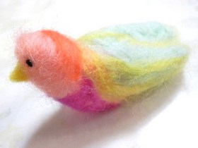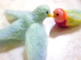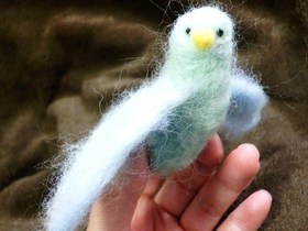 インコちゃんを作ってみることに★ 平面のプリントを見ながら・・・。 ![]() 細かい部分は、よく分からないけど、 まあるくデフォルメしちゃえばいいか・・・ と、とにかく、サクサク。 ポイントは、このインコの虹色。 細かい部分はちょっと違うけど、 見ると、ウキウキするような、女子心をくすぐる ポップな色あいにしたくって。 ![]() それから、もう1羽作ってみる事に。 今度は、ブルーのこんなインコをお手本に。 羽もちゃんと広げて作ってみよう。 ![]() ひょい! 手乗りインコになりました。 翼に、緑とブルーの羊毛を混ぜて、ふんわりした 色を出したんだけど、うまく映りませんでした。 ![]() お部屋にふんわり、温かななアイテムが 増えました。 冬のお部屋は、こうした温かな小物がよく似合いますね。 上から吊るしてもいいかなぁ・・・・。 ![]() |