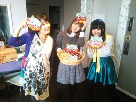 矢板時間などのパーソナリティーをつとめる松浦千佳ちゃんが、 みんなを盛り上げるために こんな素敵な演出をしてくれました。 鬼のお面と、落花生と、チョコと苺ミルクキャンティー ![]() 偶然、そこにいた3人で、写真をパチリ。 お面は少々小さかったため、全員手に持っております。 右は、今日のB★BOXのアシスタントで BERRY ANISON TIMES!では、月末のパーソナリティーを 担当しているゆきちゃんです♪ ![]() |