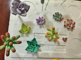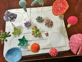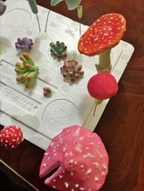 粘土自体に、アクリル絵の具で、着色をしてから カタチをつくるものと、 素のままで形成して、後から色を付けるものが あります。(好みです) ![]() 今回、キノコと同じくらい、 どうしても、作りたかったが、多肉植物。 ぷっくり、コロンとした見た目が 奇妙かつ、かわいいんですよね~。 ![]() 乾いたら、多肉植物の先端を それぞれ、赤っぽく着色。 こうすると、ますます、奇妙かつ かわいい~(^▽^) ![]() そして、もちろん、きのこもいっぱい。 今回は、たくさんの種類を作りたいと思って 本を見ながら、それぞれほんとうにあるキノコを 作りました。 ![]() 乾燥させたら、た~っぷり、マニキュアの トップコートを塗って、ツヤをだして、 ひとまず、完成です。 これを、フォトフレームにつっくけたり マグネットにつけたりして 作品にします★ ![]() |