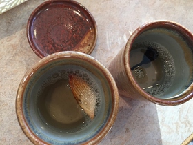 赤と白の何の味もない、木の枝にくっつけた団子に