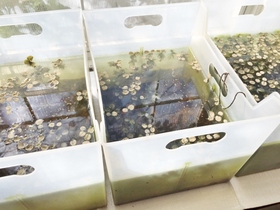 BERRY ANISON TIMES!は今日から 放送日時が変更です。 今夜25時!(毎週土曜日の25時)つまり、 毎週日曜日に日付が変わって深夜1時とも言えます。 やや、遅い時間になりましたが、引き続き よろしくお願いします。 さて、メダカの繁殖に成功し、気づけば、 水槽が3つになったことで、室内で飼うには、 手狭になったため、外で飼っていたのですが 冬になり、この寒さの中でも、外で飼育していいのかと みなさんに問うたところ、「大丈夫」とのアドバイスを いただきました。 ![]() でもっ!やっぱり、我慢できず、 室内に移動してしまいました(^^;) 普通にしてても、寒いのに、水の中にいるなんて もう、考えただけで寒い(>へ<;) 水に手を入れたら、凍えるように冷たい…。 じ~~~っとしているメダカさんたち。 本当に耐えられるのか?! もうだめだ!こんな環境に置いておけない。 …と、結局、室内に入れて、少し安心。 ![]() 野生のメダカは、川の中で越冬するので 大丈夫なはずなのですが、 ペットショップの方に聞いたら、 私が使用している、この明らかに、水槽ではない、 100円ショップのプラスチックの容器では、 全く保温性がないため、より水温が下がり、 メダカの体力を奪う恐れがある…とのこと(>O<。) 常に流れている自然の川とはちがったり、 水槽を置いてある場所が日蔭だったりと いろいろな要因から、はやり室内に 入れたほうがよいだろうという結論に 至りました。 ふぅ…。 |