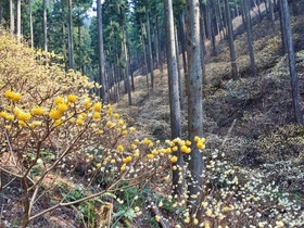 見てきました☆ こちら、先週の日曜日の様子です。 黄色と白い点々は、すべてミツマタですよ。 一面に広がっていました。 ![]() しかし! 上を見上げれば、それは、杉の木。 いっぱいある~…。 花粉症が怖い。でも見たい…。そんな葛藤の中 完全防備でいざ! ![]() また出た! アラレちゃんメガネとデカマスク(笑) メガネが曇るけど、どちらも外せないのだ。 ![]() ミツマタは、下を向いた小さな花が毬状に 集まって咲いています。 下から覗き込むと、淡い黄色の花と中心の オレンジの色合いがきれい~。 まるで万華鏡のような世界でした。 ![]() 花びらは四枚なのにミツマタ。 どこがミツマタなのか、といいますと それは、お花が咲いている枝が 三本になっているんです。 ミツマタを見に行ったら、お花に見とれてしまいますが 枝が三つになっているのもチェックです。 こんな不思議なお花の道を進んでいくなんて 素敵★不思議な国にいざなわれそうです(^▽^) ![]() |