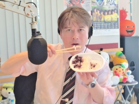 画像で示したいと思います。 年度末の水曜日は、岡田眞善さんがRBZに出演する ラストデイということで、番組恒例4時のおやつの時間は とろろが、心を込めて、眞善さんの大好きな「ゆかりご飯」を 届けようと思っていました。 ![]() ご飯に、ゆかりで「眞善」と描くのです。 紙で、丁寧に切り取って、 よしっ!あとはゆかりをこの隙間にふりかけるだけだ~ と、ドキドキしながら、サラサラサラ~ そして、いよいよ、紙をはがしたときっ!! ![]() がっびーーーーーーーん!! なにこれ!「眞善」はどこ? 信じられない形でゆかりが姿を表したのです。 こ、このままでは、眞善さんに渡せないよ~ そう思い、もう一度挑戦 ![]() こんどは、ゆかりの中に、このひらがなの文字を、 反転させる作戦。 あとは上からゆかりを全体に振り掛けて この文字をはがせば… と、計画ではきれいな文字が浮かび上がるはずが その後の写真を撮り忘れるほど、何が何だか 分からないご飯になり。 敗因は、髪にご飯がくっついてしまい ゆかり他の部分のご飯まで持って行ってしまうこと でした。 ![]() そこで、最後の手段。 表面をゆかりで染めたご飯に字を掘る…。 これも結構難しかった。ご飯がゆかりを連れて くっついてくるのだから。白くしたい部分にも ゆかりがどんどん侵入…。 もうっ! 必死で「しん」を掘り終えた時、気が付いた。 もう、「ぜ」とか掘るスペースも気力もないことを…。 そして、本番、この何が書いてあるかわからない ゆかりの「眞善」ご飯を眞善さんに食べていただくことに なったのでした(^V^)ま、いっか。 ![]() |