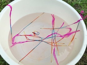 輪ゴムを縛り付けたりして、藍が染まらない部分を