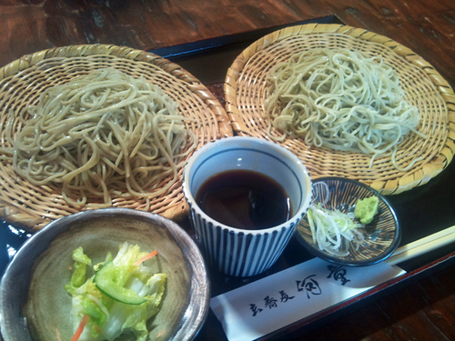 写真の右が「摩周(ましゅう)」産のそば粉で打ったもの。