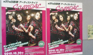 10/30(土)4人組ガールズロックバンド"SCANDAL"が白鴎大学の学園祭ライブに登場。