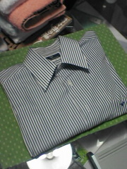 【写真は6年前に仕立てたストライプのシャツ。お気に入りのひとつっす。】
