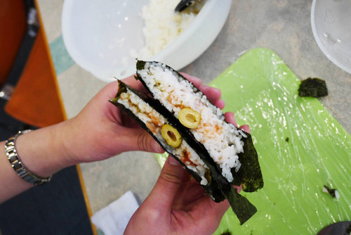 眞善さんのオリーブの実が入った「おにぎらず」は味も見た目もGOOD! かもちゃんの「おにぎらず」は茶色い色が目を引くパワフルな「おにぎらず」に仕上がりました・・・! ![]() ぜひ、みなさんも好きな具材をつかったオリジナル「おにぎらず」に挑戦してみてくださいね!