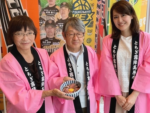 手塚正さん&優子さんご夫妻がお越しくださいました~ しかし、今年の夏も暑いですね。牛さんたちの様子が気になりますが… 「人間よりも涼しく快適な環境で過ごしている」とのことw “安全”“安心”で、こだわり抜いて育てられた「とちぎ霧降高原牛」。 その味は一流品で、今年も7月に開催された「令和3年度全農枝肉共励会」にて 手塚さんが育てた「とちぎ霧降高原牛」が「交雑種の部」で最優秀賞を受賞! 2連覇を達成!! (今回で13回目の日本一!!) ![]() スタジオでは優子夫人自慢の 「日本一のとちぎ霧降高原牛の特製ローストビーフを使ったどんぶり」を いただきました♪ ★ごはんは、丼ものに相性バツグンの栃木県産のお米「とちぎの星」♪ 「とちぎの星」は、お米の粒が大きくしっかりしており、豊かな甘みが特長ですので、 お肉の味にももちろんピッタリです! ごちそうさまでした~!! ![]() とちぎ霧降高原牛…
