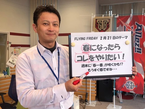 金曜の朝は『FlyingFriday』(略して『FF』) (テレレレーレーレ、テッテレー♪) パーソナリティーは、渡辺裕介・DJゆーにぃ! スタジオBHILLSから生放送! 今日のテーマは 【 春になったら、コレがやりたい! 】 (もうすぐ春ですね~!) ![]() 新しくチャレンジしたいこと、 寒い時期にはできなかったこと、 また、旅もいいですよね~!! など、春になったらやりたこと、やってみたいこと、 教えてください! それでは11時まで、 栃木の朝をフライトしていきましょう! |