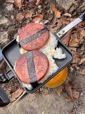 リュックに入る、小さなソロストーブ(ガスバーナー)と 手軽にコンビニなどで手に入る中華まんやおにぎりはGood! ホットサンドメーカーで、ひと手間加えるだけで、ごはんが特別に変身するので、 ぜひお試しを!! ![]() そして…フリーズドライごはん!