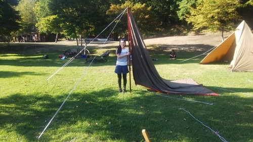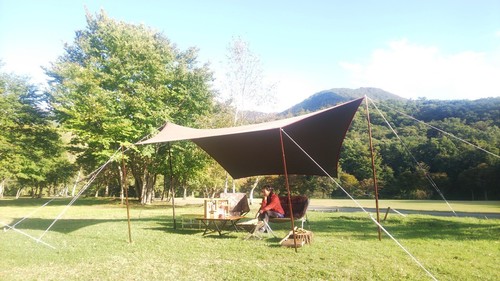 秋キャンプを楽しんでいます。 今回はタープの設営にトライ!。 日よけの部分、リビングのような空間の部分で、 テントよりも過ごす時間が長いからタープも大切ですよね。 今回使ったのは、 テンマクデザインのコットンヘキサMという商品。 ヘキサタープという六角形の一枚布のタープを設営しました。 ![]() ![]() 一人で無事に立てられましたね。