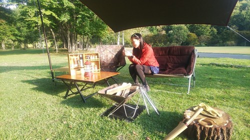 秋キャンプを楽しんでいます。 テントとタープの設営は完了したので、 今回は焚火に挑戦! ![]() 秋冬のキャンプは寒いので、焚火したくなりますよね。