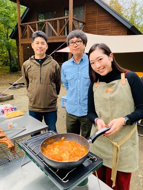 「スリムスパイス」というアイテムを使いました。 こちらは印度カリー子さんが作った、 スペシャルカリースパイスセットで、 11種類のスパイスがコンパクトな5段のケースに入っています。 上から順番に入れていくだけで本格的なスパイスカリーの出来ます。 玉ねぎやトマト缶、鶏肉を入れて、 簡単に作れちゃいました! 辛さも調節できるので、 好みの味を作れますよ! ![]() ![]() 外で食べるご飯は最高! しかも写真映えもするし、 オシャレなご飯になりました♪ ![]() ぜひみなさんも作ってみてくださいね!