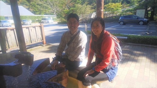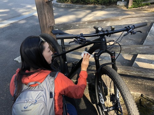 いい写真が撮れました! ![]() そのほか足湯もあって、 自転車のあとにリラックス♪ ![]() 景色も楽しんだ後は、自転車のお手入れ。