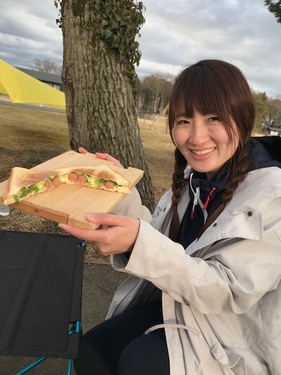 お送りしてきたこのコーナー。 これまで、リポーターのユッキーは… 通勤通学などの日常使いもできて、遊びもできる自転車選びから始まって、 いろんな種類のスポーツバイクを乗ってみました。 そしてサイズの選び方、自転車アイテムに、交通ルールやマナーなどを学びました。 さらに、自転車に合うアウターや小物など、アパレルアイテムもいろいろと勉強しましたね! そしていよいよ公道デビュー! 「ネオサイクリスタ小金井店」から、「道の駅しもつけ」までの約7kmをサイクリング。 初心者のユッキーには、ちょうど良い距離を無事に楽しんだようで… ねー、ちょっと前までは、駐車場で立ちゴケしていたんですよ? そんなユッキーも、もう立派にサイクリストの仲間入りですね! 今日は、今までいろいろと教えてくれた「ネオサイクリスタ」の渡部さんと、「WILD-1」の森田さんに お礼に、アウトドアクッキングをご馳走します! ![]() お世話になったお礼は…やっぱりホットサンドでした(笑)