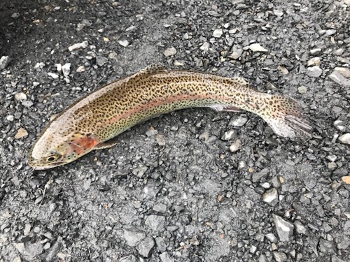 エサ釣り用の池にチェンジしたところ、さっそくHIT! ![]() なんと、20cmクラスのニジマスGET!!
